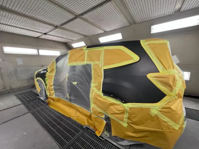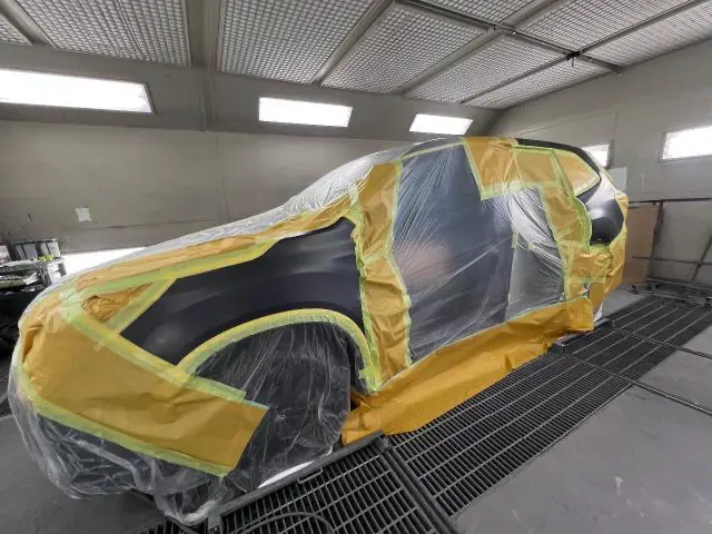 隣接パネル(修理された隣のパネル)のボディ側も色の差が出てしまうのでこちらも塗っていきます!↓