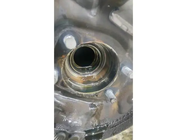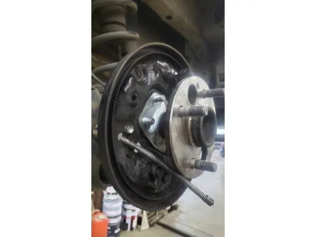 ブレーキドラムの中からオイルが垂れており、確認するとドライブシャフトのオイルシールの劣化によるものでした