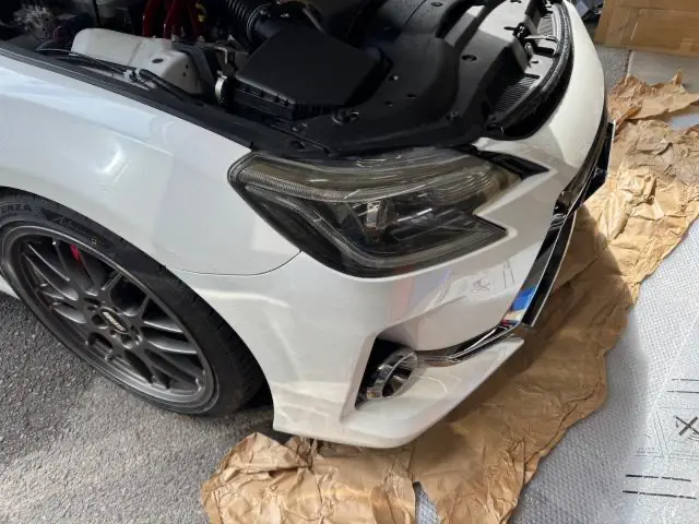 バンパーを新品に付属品は再利用という形で新品バンパーに付属品を移植していきます。